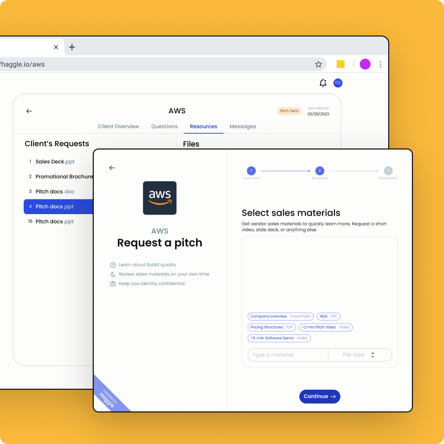 I collaborated with Haggle to design a portal for connecting business clients and product vendors of all kinds.